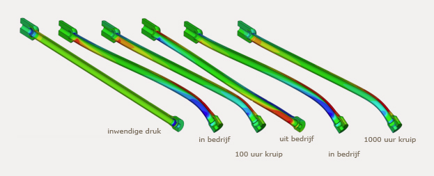 Kruipschade treedt vaak als eerste op waar hoge spanningspieken plaatsvinden. Vaak zijn secundaire spanningen de oorzaak van deze schade. Dit fenomeen is een combinatie van kruip en vermoeiing. De hoge secundaire spanningen vloeien door kruip en/of plasticiteit weg. De spanning neemt af, waardoor de kruipsnelheid ook afneemt. Door het in en uit bedrijf nemen van de installatie treedt dit patroon cyclisch op, waardoor de schade steeds verder toeneemt. Met behulp van de eindige elementenanalyse kan dit specifieke lokale gedrag berekend worden om zo een levensduurinschatting te kunnen maken.